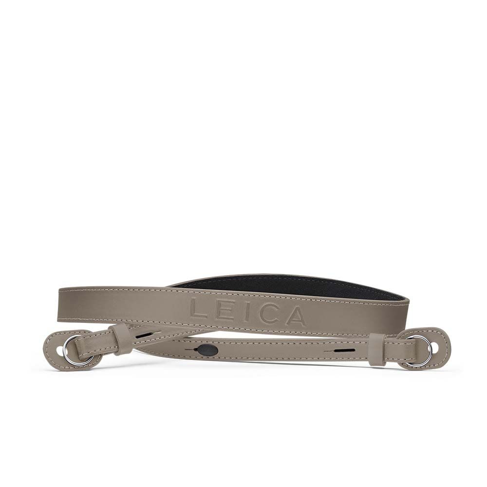 The adjustable carrying strap made of cowhide leather makes it highly comfortable to carry when on the move. Its integrated protective tabs on the attachment prevent direct contact between metal and the camera. The strap is adorned with a stylish three-dimensional embossing of the Leica logo in the shoulder area.