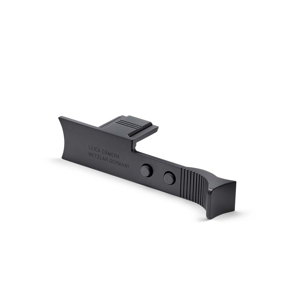 The aluminum or brass thumb support can be slotted into the hot shoe of the Q3 for improved ergonomics. As well as ensuring a secure handling of the camera (especially during one-handed shooting and filming), the thumb support also enables longer exposure times.