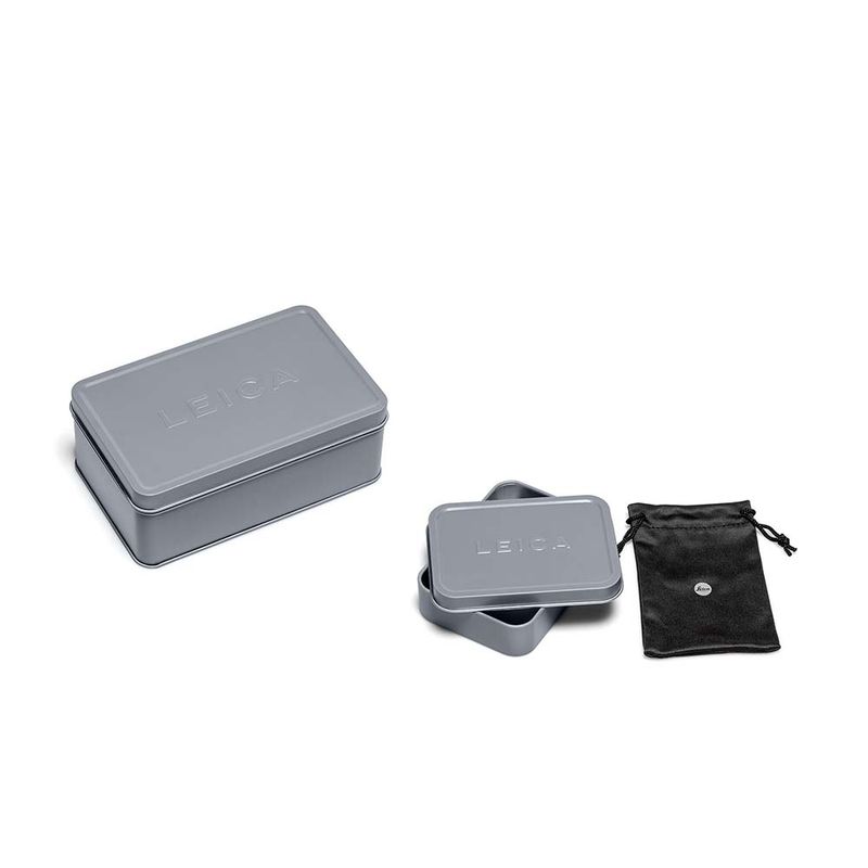 With the boxes made of grey metal, you can elegantly and durably preserve your Leica SOFORT pictures. The set includes a larger as well as a smaller tin, both embossed with a classic Leica logo.