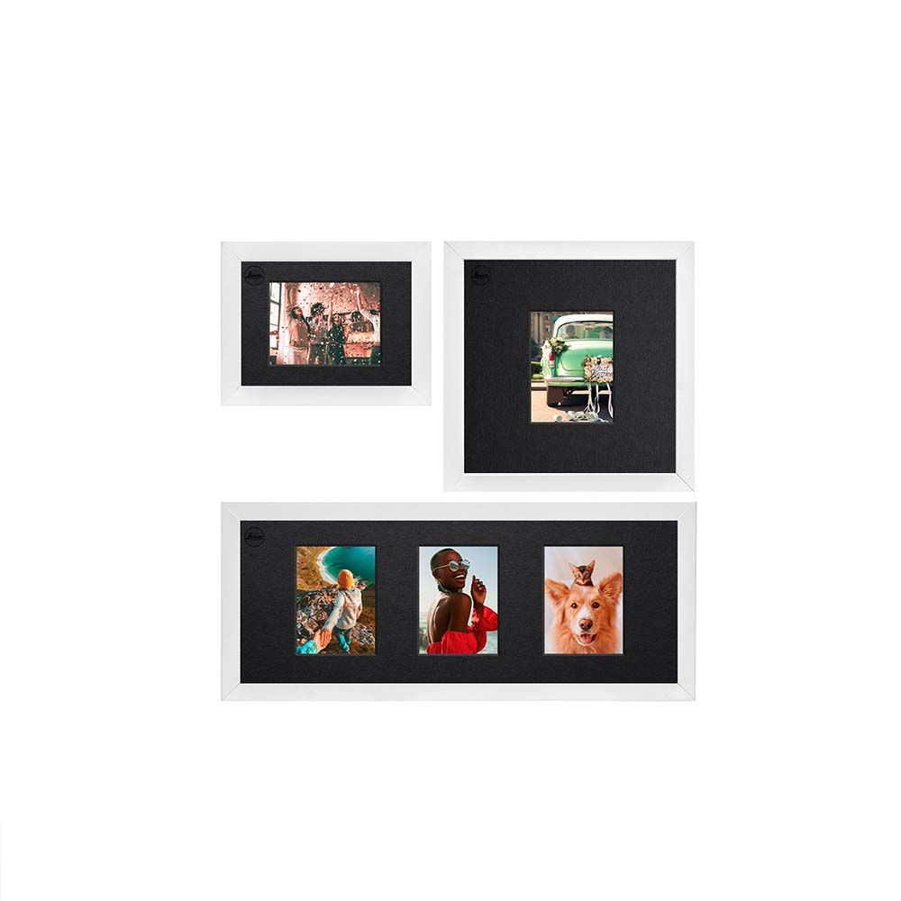 Frame unforgettable moments stylishly - with the picture frames for prints in Instax Mini format, you put memories in the spotlight. The set includes frames in three different sizes and is available in the colours black, white, or natural. The glass-free wooden frames are each equipped with passepartouts featuring a subtle Leica logo.