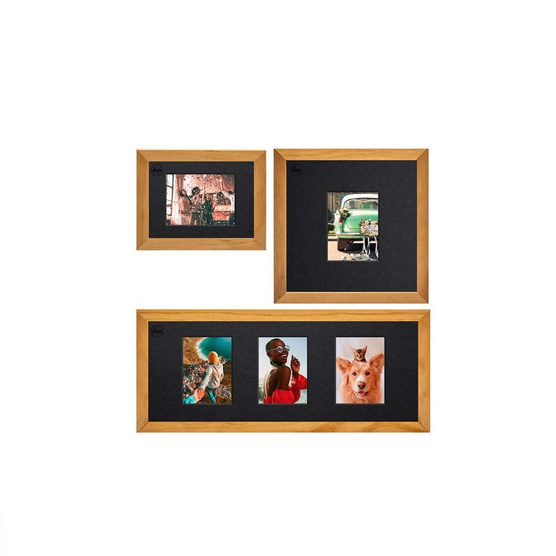 Frame unforgettable moments stylishly - with the picture frames for prints in Instax Mini format, you put memories in the spotlight. The set includes frames in three different sizes and is available in the colours black, white, or natural. The glass-free wooden frames are each equipped with passepartouts featuring a subtle Leica logo.