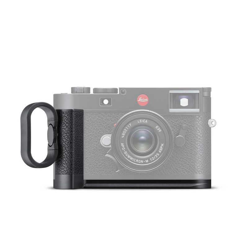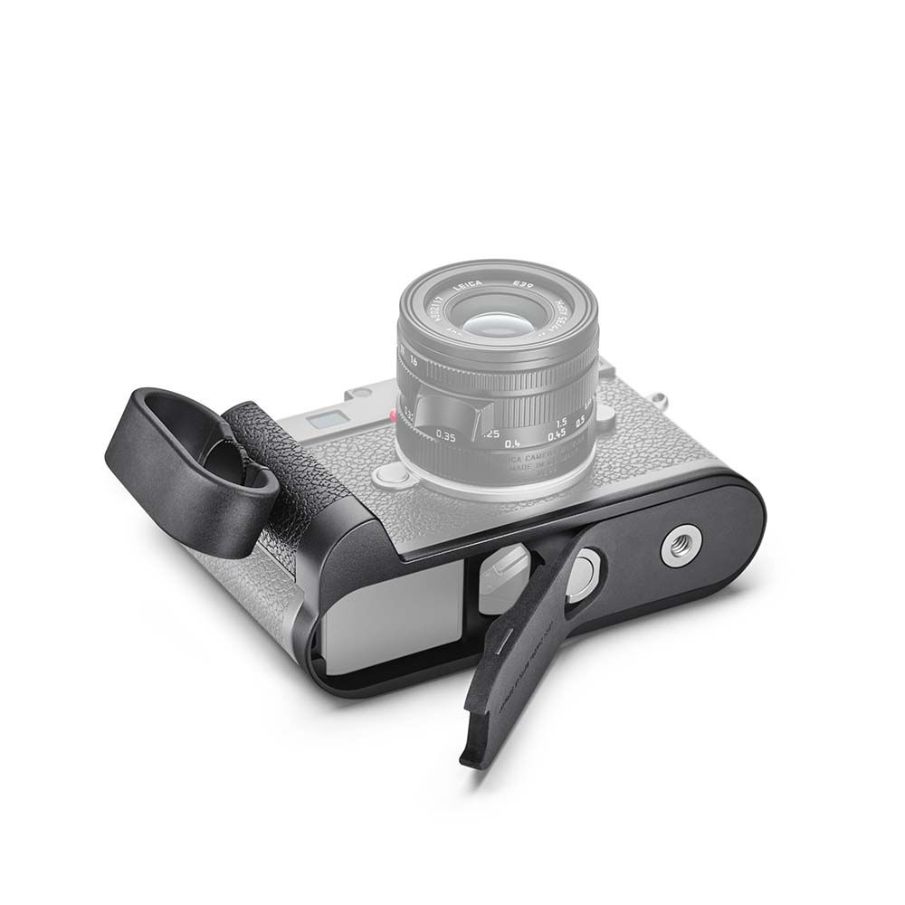 The ergonomic handgrip ensures a firm hold on the Leica M11, especially when shooting in portrait format or with one hand. Optional finger loops in sizes S, M and L offer additional security. It mounts easily without any tools and can also be used when photographing with a tripod. The handgrip is ARCA-SWISS compatible, and can be directly inserted into a congruent coupling system via the integrated dovetail, without the need for a quick-release plate. The camera’s USB port and battery – concealed beneath an easy-to-open rubber cover on the base plate – remains fully accessible at all times, even when the handgrip is mounted. This enables a continuous connection to, for example, a power bank or the Leica FOTO cable and a quick change of the battery. Just like the M11, the handgrip is made of aluminium with a black paint finish – creating a perfect colour match.