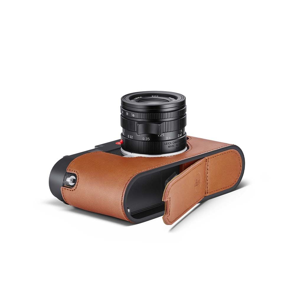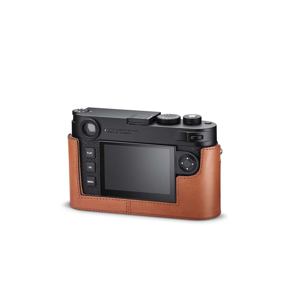 The half-case made of supple, vegetable-tanned Italian leather provides optimal protection for the M11. Available in three attractive colour options (Black, Cognac, and Olive Green). No tools are required to attach the protector, and all operating elements as well as the USB port remain fully accessible. Camera accessories such as a shoulder strap, wrist strap or thumb rest can also be used without restrictions. A flap on the protector’s bottom offers instant access to the battery and memory card, whereas an additional compartment for an additional SD-Card ensures that your M11 is always ready to shoot.