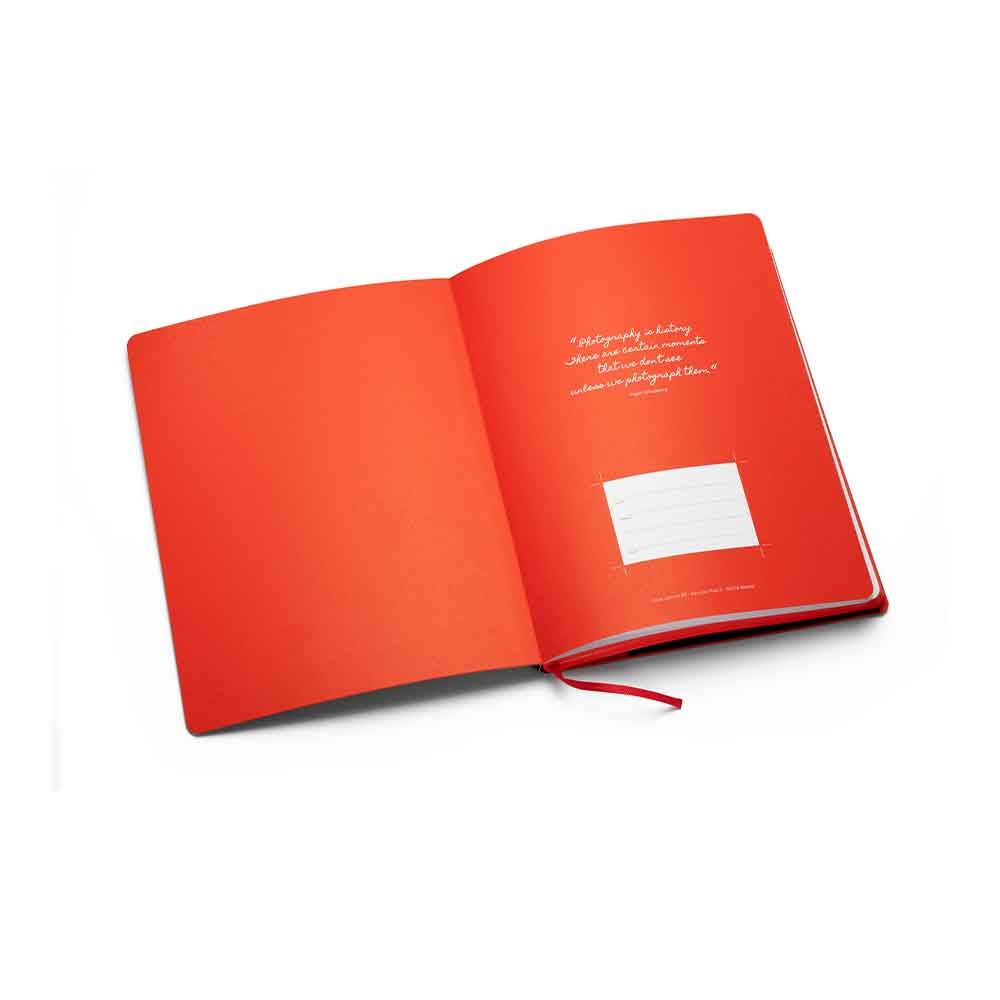 This notebook embodies sophistication and refinement, perfect for keeping track of your appointments, notes and inspirational ideas. Adored by aficionados of Leica's legacy, this exclusive notebook features a luxurious black camera leather cover, adorned with the iconic diamond pattern and embossed Leica logo. Produced in Germany, there is ample space to write down your thoughts on the light grey recycled paper. Enhanced with carefully chosen accents like edge protection, a rubber band closure, and a bookmark in Leica's signature red, it leaves a lasting impression on admirers of the cult brand. Write your own personal Leica story whilst organising your everyday life!