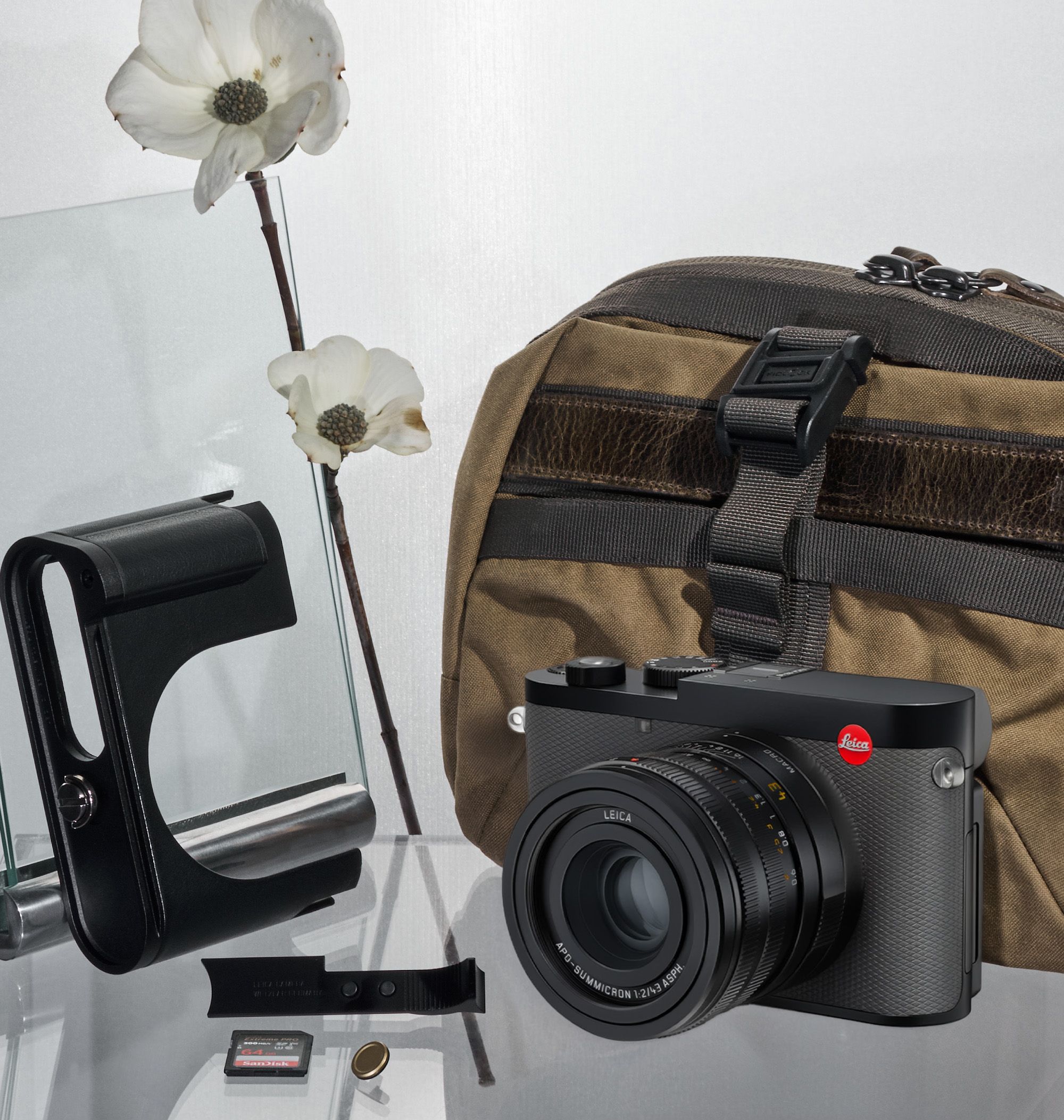 The aluminum or brass thumb support can be slotted into the hot shoe of the Q3 for improved ergonomics. As well as ensuring a secure handling of the camera (especially during one-handed shooting and filming), the thumb support also enables longer exposure times.